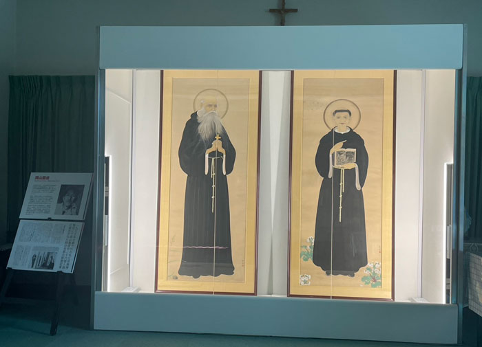 その二十六聖人を描いた掛け軸がバチカンに所蔵されていると知り、私は無性にその絵が見たくなりました。何とか画像だけでも手に入れられないかと方々を探し、ついに京都の司教様からその写真データをいただくことができました。小さなデータでしたが、それをもとに実物大のレプリカを制作し、当時の浦上キリシタン資料館で展示しました(現在はカトリック玉造教会で展示中・図②)。すると、そこから思いがけない展開が始まったのです。