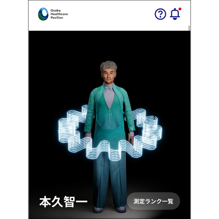 パビリオンではいろんな体験型のブースがあり、その中には現在の自分のカラダの測定(髪や肌、視覚などのランク)を入力するとAIによっていろんなランクに判定され、最終的には25年後の自分(アバター)と出会えるものがあり、改めて自分の健康について考えるいい機会となりました。