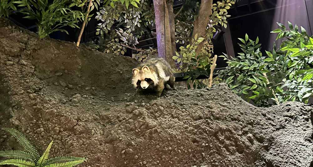 こちらのパビリオンの最大の魅力は、館内の深い森の中をランタンで照らしながら散策できることです。外の暑さとは打って変わって本物の木々が生い茂り、取り囲むように霧(ミスト)が立ちこめたり、どこからか鳥のさえずりや水の音が聞こえてきたり、森の小道からはかわいい動物との出会いがあったりしました。