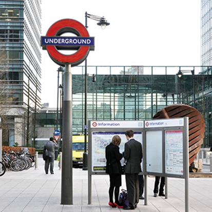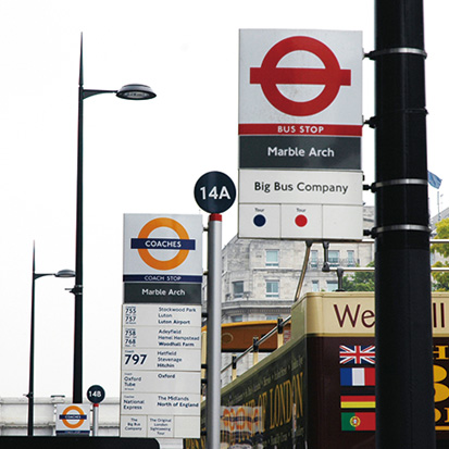 中でも優れたシステムとして紹介したいのはロンドンのTransport for London(ロンドン交通局、略TfL)の公共交通のサインシステムである。ロンドンの地下鉄は1863年、地下鉄の開通をきっかけに鉄道会社が次々に開業し路線が増え、会社が違うことから乗り換えなどに様々な支障が出てきて地下鉄、鉄道路線が統合され、1933年にロンドン地下鉄,路面電車、路線バスといった全ての公共交通機関会社の運営組織Transport for London(ロンドン交通局)が設立されロンドン交通局の傘下に入った。このような経緯を経たTfLは、ロンドン公共交通大半の交通政策とシステムの運営を業務とし、その範囲は長距離バス、路線バス、地下鉄、船、タクシー、自転車、LRT、街路と広範囲に及んでいる。