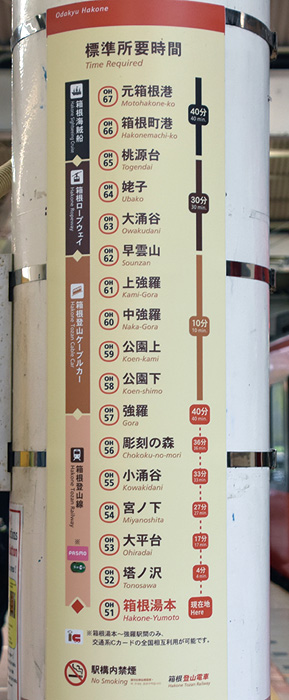 民間の事例としては東京から1時間半と近い箱根地域の観光地に対して小田急箱根ホールディングが関係する箱根登山電車、箱根登山ケーブルカー、箱根ロープウエイ、箱根観光船、箱根登山バス等の異なる交通機関に統一した駅ナンバリングを導入し、箱根地域をカバーする交通機関を視覚的にもネットワークしている。またチケットシステムについても2日間、3日間の箱根フリーパスを発売し箱根地域はほとんどの交通機関が駅ナンバリングを頼りに自由に乗り降り出来るシステムとしている。