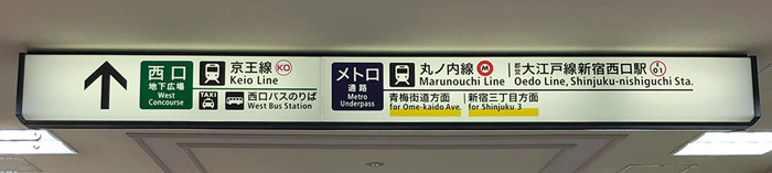そこで東京都や鉄道各社では2020年のオリンピックに向けて公共交通サインをわかりやすくする試みが行われている。首都圏の東京駅、新宿駅、渋谷駅、池袋駅の主要な交通ターミナルでは乗り換えなどに関わる表示内容について共通化したルールを検討し整備することが検討されている。具体的には路線や駅名など日本語で表示されている部分についてそれぞれマーク化し、補助的に英文を表記、駅名についても路線マークと連動した駅ナンバリングが行われ、乗り換えの案内誘導表示などについてはレイアウトシステムの標準化などが検討されている。