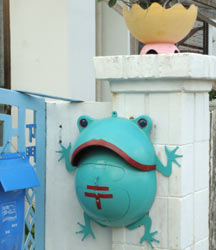 半球状の物体に4本の手足が生えていなければこれがカエルと気がつく人はいないでしょう。しかし、丸いおなかに〒マークがなければこれをポストと思う人はさらにいないでしょうね。カエルとポストがどう結びつくのか不思議ですが、これを作った人には脱帽したい気持ちです。両目がかわいく赤い口がユーモアを誘います。沖縄の伊江島におけるウオッチングでの収穫です。