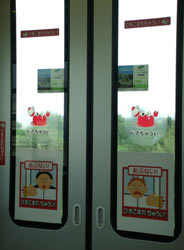 ちなみに東京の電車ではどんなステッカーが出ているのだろうかとその後注意して見てみたが、その手のものがさっぱり見当たらない。あってもそっけない文字だけのもの。都会の人間は電車に乗りつけているからそんな注意は必要ないということか。