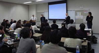 in Sapporo」が開催された。これはサインデザインの現場で活躍しているトップデザイナー8人がそれぞれの塾の塾長として札幌に出向き、北海道のデザイナーやサインに関わる人を対象に2日間みっちり短期集中講義を行うという新企画の第一回目の開催であった。 「明日からの仕事に役にたつサインデザインのプロフェッショナルな技」をテーマに、それぞれの塾長が一人あたり100分の持ち時間で、自分の得意な分野をじっくりと講義する。顔ぶれは横田保生氏、渡辺太郎氏、山田晃三氏、竹内誠氏、武山良三氏、定村俊満氏、宮崎桂氏、島津勝弘氏で、いずれも日本を代表する旬のデザイナーばかり。 ![]() ●改めてサインのことを考えることができ、仕事に対する意欲がわいた(釧路市)●大学を卒業して以来の素晴らしい刺激のある講義だった(旭川市)●本来なら企業秘密!?的な内容を惜しげもなく聞けてとても勉強になった(札幌市)●これからは仕事に振り回されることなく積極的に仕掛けていこうと思う800分だった(函館市)●写真からではわからない、考え方・展開の仕方・サインとは何なのかをより深く学ぶことが出来た(札幌市)、というあつい感想が寄せられている。 |