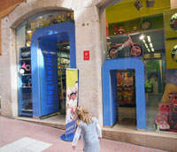 ダリ生誕の地、フィゲラスにはダリ美術館やダリ宝石美術館があって不思議なアートの世界を楽しめます。小さな町ながらおもちゃ博物館があるし、おもちゃ屋さんがいくつもあり散策するに楽しい雰囲気が漂っています。 このおもちゃ屋さんにはビックリ。大人の出入り口とは別に子供専用の入り口があるのです。しかも造りが大人用とそっくりなところが面白い。子供は当然こちらから入るのを好むでしょう。お犬様やお猫様専用入り口はたまに見かけますが、お子様専用というのは珍しいですね。子供の心理を見通した店づくりと感心しました。