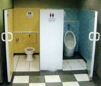 東京メトロ銀座線の「三越前」駅構内に設けられている多機能トイレには何と独立した幼児用トイレの個室が設置されています。左が洋式(男女兼用)、右が男児用小便器個室です。 どちらも入口に鍵は設けられていません。親の目が行き届くように仕切りは低くなっています。 このようなオープンなトイレなら安心です。 幼児用トイレの普及はこれからといった感じのようです。