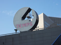 去年の7月、北フランスの旅の最後にパリを訪れた。5年ぶりの訪問だった。日本の屋外サインは現在LED一色といった状況だがパリは果たしてどうなのか、関心が高かった。結果、LEDは全くないとは言えないが、ほとんど見かけないと言っていい状態だった。 私たちが宿泊したのはラ・デファンスの駅のすぐそばだったので、その地区のサイン状況をご報告したい。 ラ・デファンスは1985年から再開発地区として整備された高層ビル集積地である。ここに新凱旋門の名で知られるプルマン・ラ・デファンスが建設されたのが1989年である。以来この地区の発展は目覚ましく、巨大高層ビルが続々と誕生している。クラシックなパリ市街に対してここだけは超現代的でセンスあふれる近代都市の顔を持つ。 大きなテントのように見える駅舎は8年前に訪問したとき、すでに出来ていたが、内部は一段と整備され、有名ブランドの店舗がずらりと並んでいた。その一角にはヒルトンホテルも営業している。そのすべてのサインが申し合わせたかのようにネオン一色。しかも、白のチューブオンリーネオンが大部分なのだ。周辺にはショッピングセンターもあったが、これも大型のネオンサインだった。現在、我が国のネオンは底を脱して増加しつつあるが、デファンス地区のネオン風景には元気づけられる思いがした。 以下に写真でその状況をお目にかけたい。