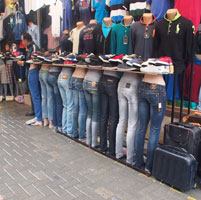人に尻を向けるのは失礼なことというのは万国共通と思っていましたが、そうとも言えないようです。人通りの多い歩道に向けて並ぶマネキンが全部尻を向けているのでビックリ(一番左の一体だけ前を向いていると思ったら胴も顔もついていて、これは生きている人間、どうやら店主のようでした)。しかも、胴の上に運動靴を載せているのも奇妙です。しかし、目立つことこの上ありません。奇抜なディスプレーで人目を引こうと言うのがこの店の作戦なのでしょうか。キプロス島の繁華街にて。
