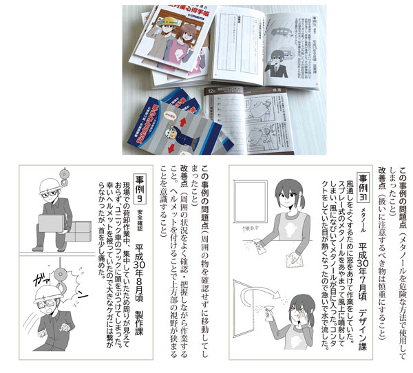 私の会社では、毎日朝8時より自社工場で全員揃ってのラジオ体操を行い、その日の作業予定等をセクションごとに発表しています。 それ以外は週初め月曜日7時半から週間工程表を用い、各セクションの責任者を集めた工程会議も行います。数年前からは、同業の先輩より社員の人数分いただいた安全についての小冊子を用い、週の初めの月曜日にその中の事故事例等で安全についての教育を行っていました。 今回自社41周年を迎え自社の営業・製作・現場施工においての失敗・事故・事例を社員より集めると共に過去の重大事故も含めて1カ月毎日の安全教育として使えるようにと、31の事故事例、仕事の失敗事例としてまとめました。 すべて弊社社員が経験した実話をもとに、イラストの得意な女性社員がそれを分かりやすく漫画にして説明文をつけてあります。事故事例の収集やイラストの修正・編集等約5カ月間をかけて社員全員参加で作り上げた力作です。すでに7月1日に第1刷を発行して、弊社朝の安全会議で使っております。今後も第2刷、3刷とより内容の濃いものを作っていきたいと考えています。 ![]() |