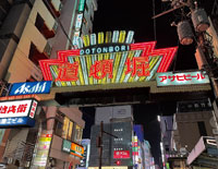 昔は商店街のアーチによくネオンが使われていたそうですが、昨今は街並みの変化に伴いネオンアーチも希少となりました。 そのようななか、かくも堂々とその存在を主張しているネオンアーチが他にありましょうか。いわゆる昭和コテコテのデザインですが、改めて眺めると何だか現代チックに洗練されて見えます。やっぱり商店街、とりわけ夜が賑わう歓楽街は景気よくギラギラ派手なほうがいい!ということで道頓堀にグッジョブを贈ります。
