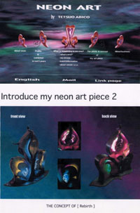 我が国ネオンアートの代表的作家である安彦哲男氏のWEBで、氏の生立ちから作品創りのポリシー、作品ライブラリー等によって構成されています。